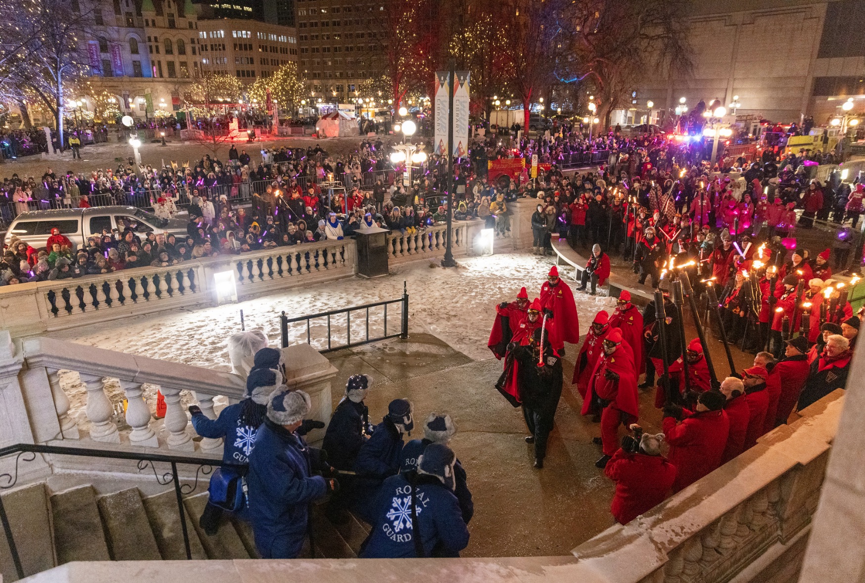 Today, King Boreas and the Queen of the Snows Rule over Approximately 21 Members of the Royal Family. These include Boreas’s four brothers Titan, Euros, Zephyrus and Notos along with their four princesses, the Prime Minister and up to ten Royal Guards. The culmination of the Winter Carnival is the dethroning of Boreas by the Vulcan Krewe. The Royal Family and Vulcan Krewe are made up of volunteers that make over 400 appearances during the year to local and national festivals, nursing homes, schools and hospitals on behalf of the Winter Carnival and the City of Saint Paul.The Saint Paul Winter Carnival is produced by the Saint Paul Festival and Heritage Foundation and is funded by private donations and corporate contributions. The Board of Directors, supported by corporate and individual members, employs a lean staffing model to help plan this community celebration.