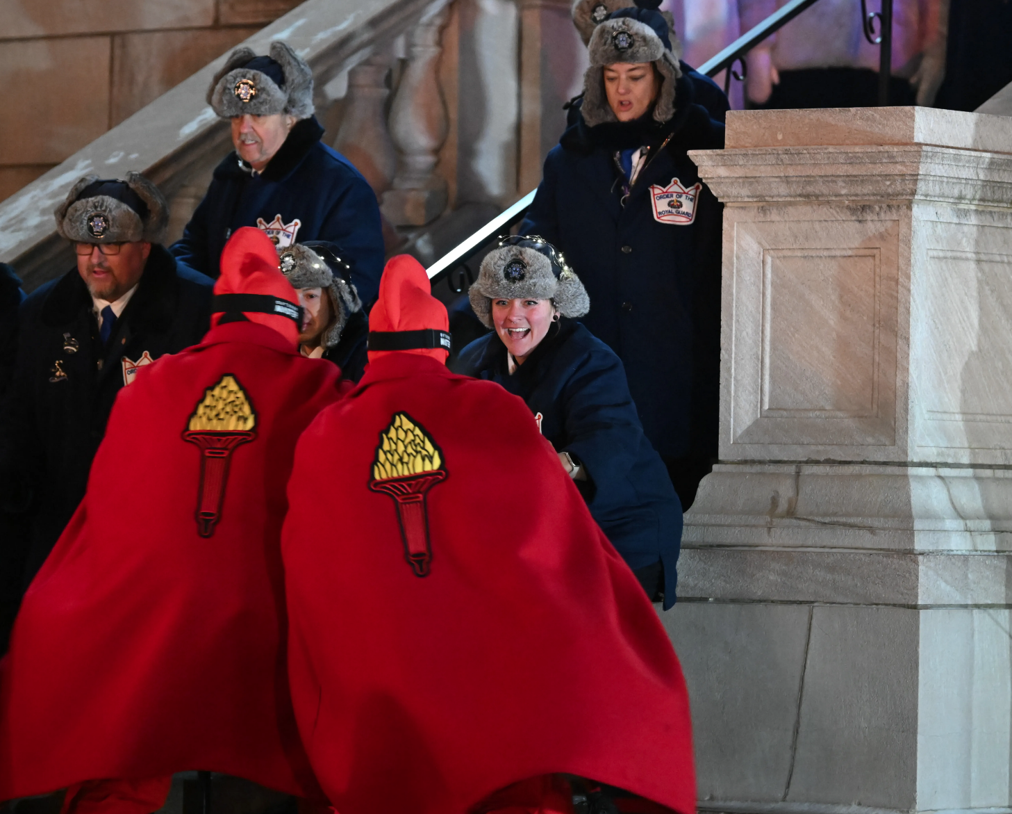 “On the final day of celebration, Vulcanus Rex and his Krewe stormed the magnificent Ice Palace and confronted the King’s Guards. Upon the good counsel of the Queen, Boreas bade farewell to the people of his winter capitol.”
